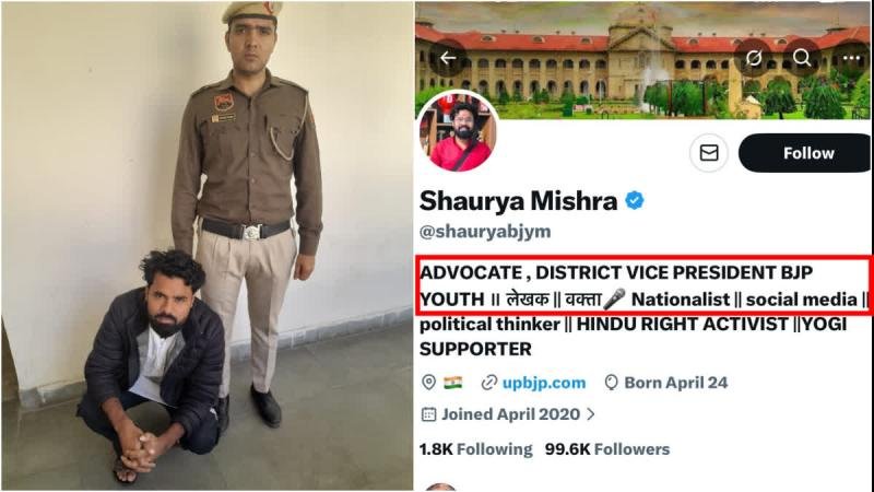 भाजपा युवा मोर्चा का जिला उपाध्यक्ष होने का दावा : वहीं आरोपी शौर्य मिश्रा ने अपने सोशल मीडिया प्लेटफॉर्म(X) अकाउंट पर खुद को भाजपा युवा मोर्चा का जिला उपाध्यक्ष होने का दावा कर रखा है. शौर्य मिश्रा के सोशल मीडिया प्लेटफॉर्म(X) अकाउंट पर करीब 1 लाख फॉलोअर्स हैं. गुरुग्राम पुलिस के पीआरओ संदीप ने बताया कि “पुलिस पूछताछ में आरोपी ने स्वीकार किया कि उसने सोशल मीडिया पर देखी गई एक आपत्तिजनक पोस्ट को उठाकर अपने अकाउंट से साझा किया था. पुलिस ने आरोपी के कब्जे से उसका मोबाइल भी बरामद कर लिया है. उसे कोर्ट में पेश किया जाएगा. फिलहाल पुलिस मामले की गहन जांच कर रही है.”