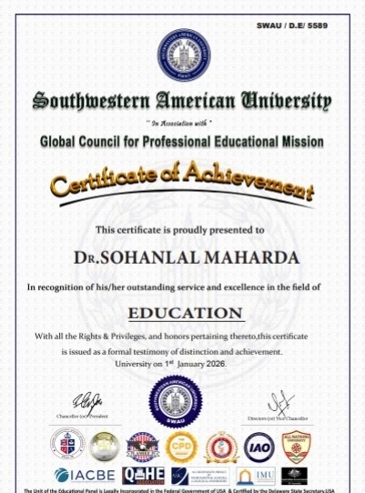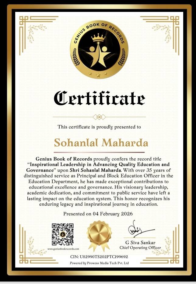 Dr. Sohanlal Maharda, a retired Principal and distinguished education administrator from Jaipur district, Rajasthan, is widely respected for his lifelong dedication to educational development, child empowerment, and community upliftment. His journey reflects compassion, visionary leadership, and an unwavering commitment to lifelong learning.